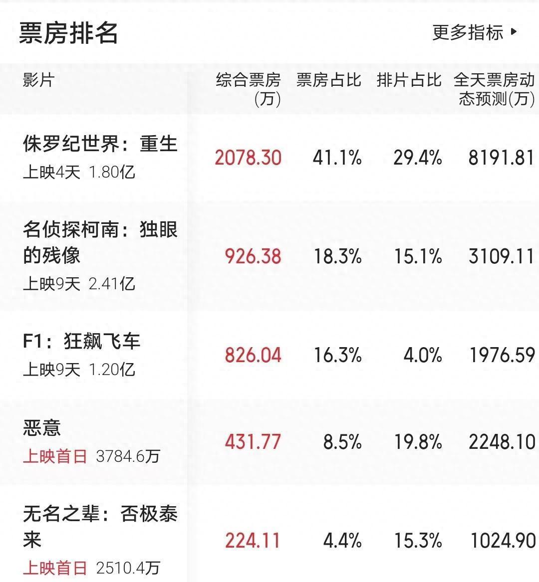 管虎新片惨败,两天票房32万,被《侏罗纪寰宇4》打懵了 本周末,国内阛阓迎来 7 部新片。陈想诚监制的悬疑罪犯片《坏心》,饶晓志导演的罪犯笑剧片《无名之辈:否往泰来》,原来是暑期档冠军热点,展望票房皆超 10 亿。可撞上热映的《侏罗纪寰宇 4》,它们被碾压。几小时内,《坏心》和《无名之辈:否往泰来》票房不到 500 万,《侏罗纪寰宇 4》却已超 2000 万。好在它们首日票房皆能破千万。