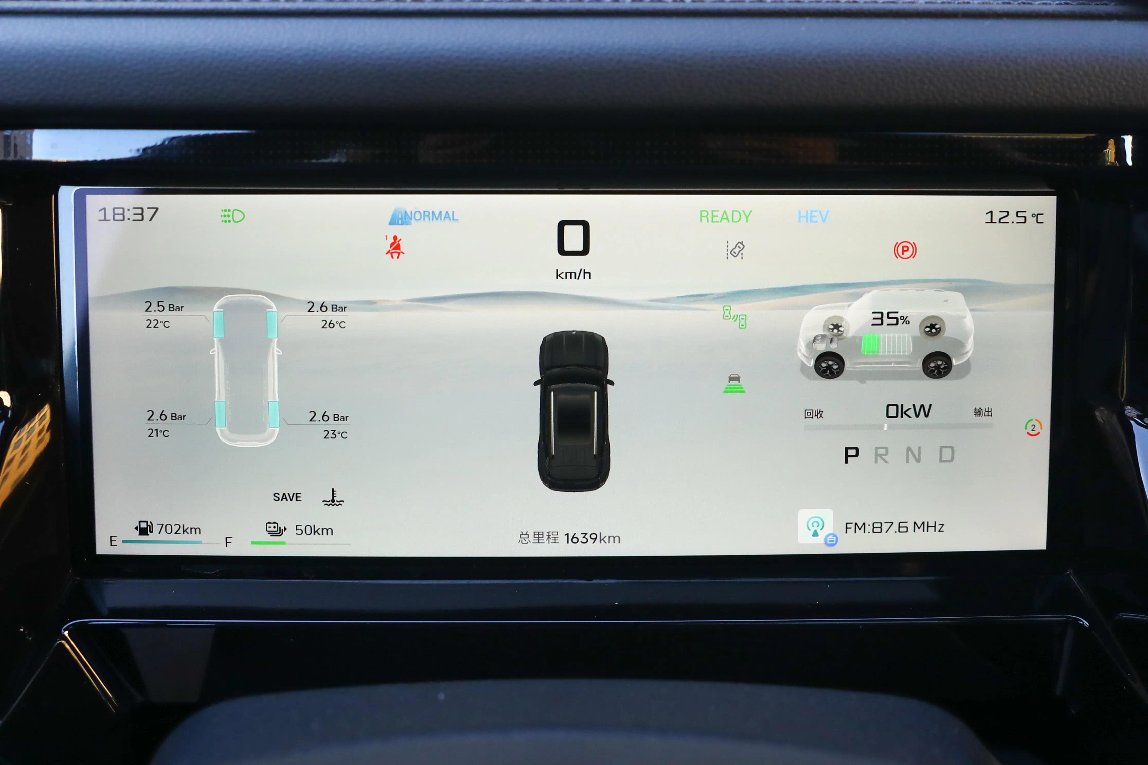 能源部分,搭载的是1.5T发动机+电机构成的油电混动系统,罗致奇瑞鲲鹏超能混动C-DM时候,发动机最大马力156Ps,电动机总功率150kW,总扭矩310N·m。电板部分罗致的是26.7度的磷酸铁锂电板,快充0.5小时,纯电续航里程可达150公里,空洞续航更是高达1300公里。