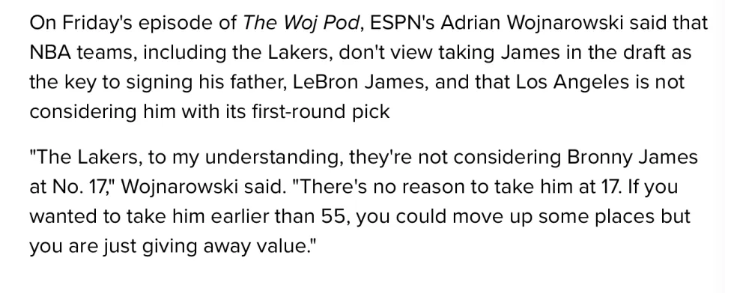 “包括湖东说念主在内的NBA球队并不认为,在选秀大会上摘得布朗尼就可以告成签下勒布朗-詹姆斯(詹姆斯2024-25赛季5140万好意思元球员选项)。”