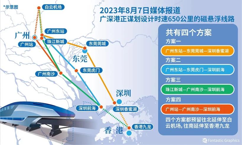 《广州市概括立体交通网盘算推算(2023—2035年)》披露,广州正超前盘算推算与其他超大城市间高速磁悬浮通说念布局及实验线成立,预留京港澳高速磁悬浮,沪(深)广高速磁悬浮2条通说念。