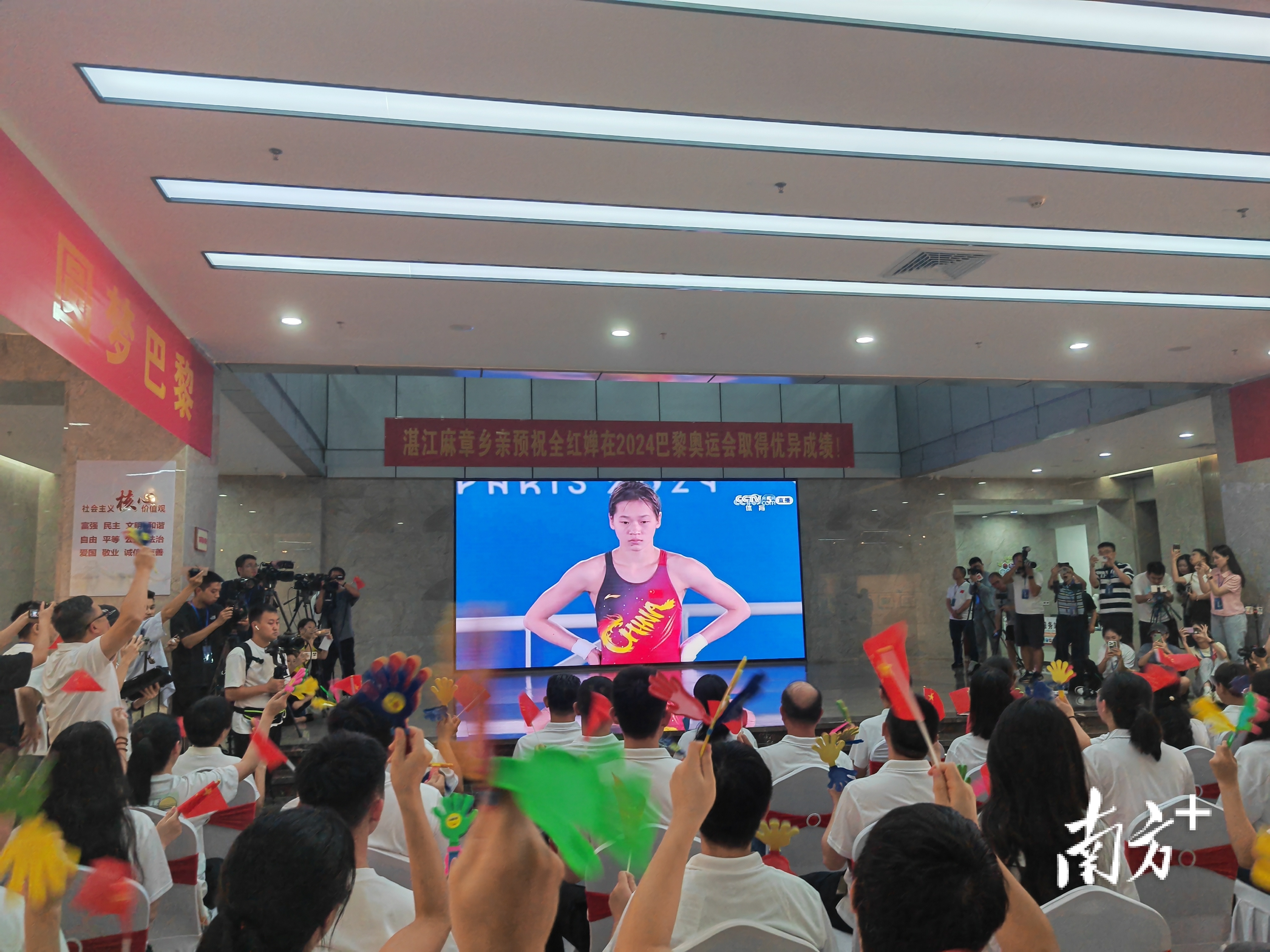7月31日和8月6日晚,麻章区两度组织区内干部众人一同不雅看全红婵跳水面目决赛,进一步凝华全社会对体育健儿在赛场上书写佳绩的援手与期待。责任组积极连结白云区企业捐赠了现场不雅赛服装,传递出麻章的剖判精神和阵容,将奥运健儿家乡对体育行状发展的趣味和援手传递给每一位不雅众。