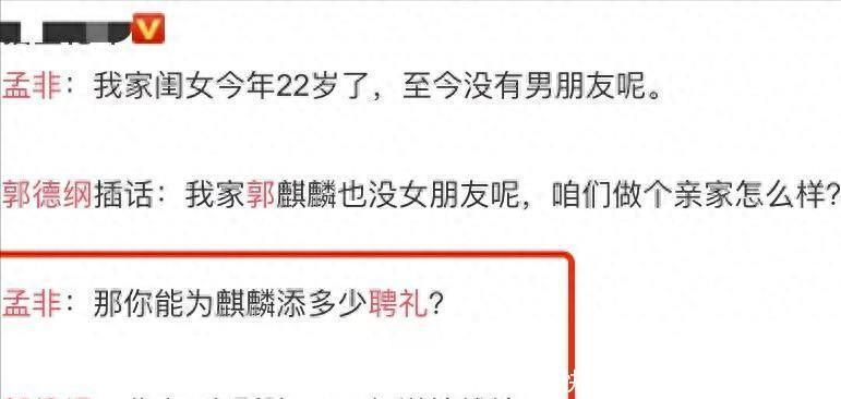 郭德纲话赶话就说开了,北京三套四合院皆弄好了,现款珠宝车子蛮横挑,2.6亿的彩礼径直摆出来,孟非听得直摆手。
