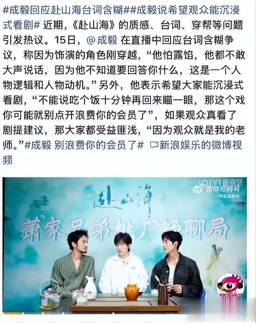 若是说剧中发扬只是工作才调的争议,那么成毅在直播中的恢复则是透澈燃烧了网友的怒气,也将他推上了“风口浪尖”。