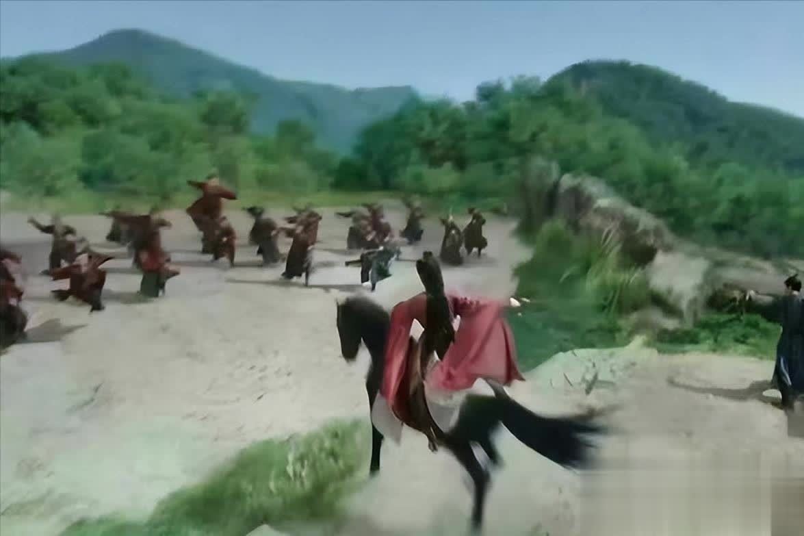 成毅骑着马从另一个绝壁跳了过来,电视剧应该是念念要突显男主的帅姿,还给他来了个慢动作。
