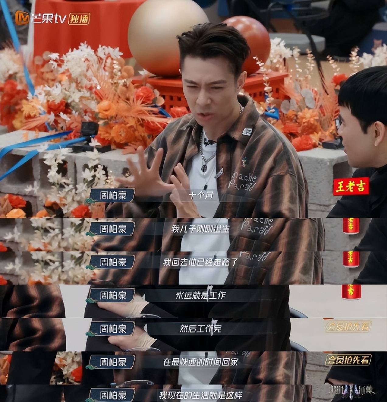 在录制节主张时候,周柏豪说:上一次参预节目,男儿才刚刚出身,且归之后,男儿还是学会步碾儿了。周柏豪录制《饱经沧桑2》的时候,有10个月莫得回家,因为这档综艺节目次制完成后,他又和春哥去录制其他综艺,是以当今我方的状态是,录制界限就攥紧技巧快速回家,不念念要错过孩子们的成长。