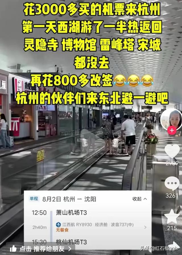 终于女子带着行李坐上了飞机,三个多小时以后,飞机抵达杭州萧山机场,女子跟着东谈主流出了机舱不久,立时嗅觉到征象的不雷同,吸进去的大概齐是热空气。