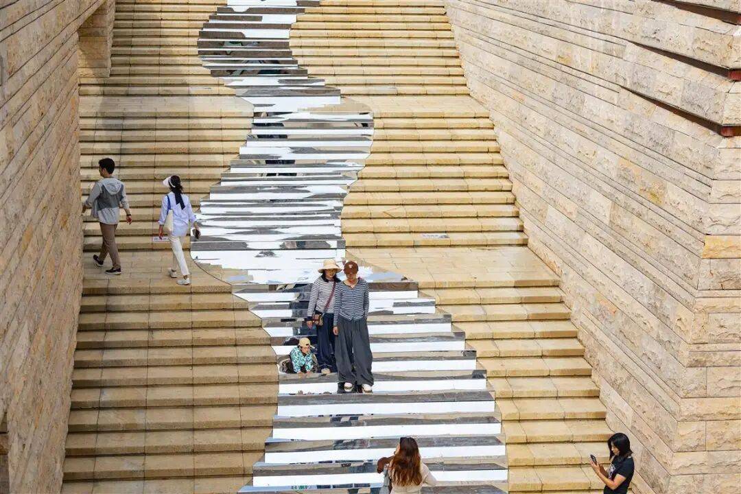 被誉为武汉“小埃及”的盘龙城国度考古遗迹公园近日新增“长江水”镜面景不雅,不锈钢材质打造的周折水纹铺设在道路上,如流动的丝绸般灵动。这一创意景不雅与陈腐遗迹酿成时空对话,眩惑广大市民前来打卡拍照,在光影交错间感受历史与当代的会通之好意思。沿途来观赏一下吧!
