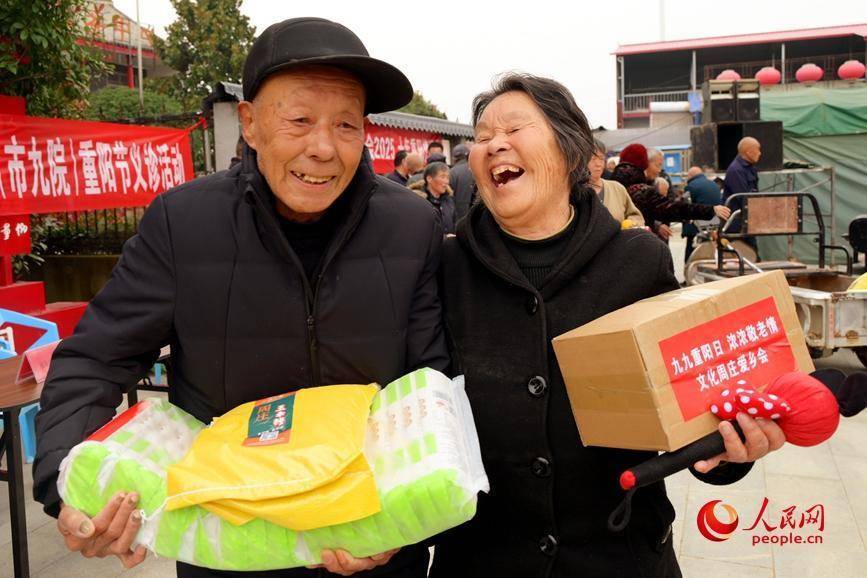 礼品奉上来,老东谈主乐舒怀。东谈主民网记者 辛静摄