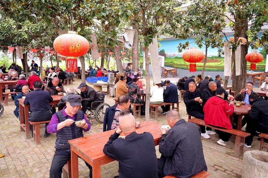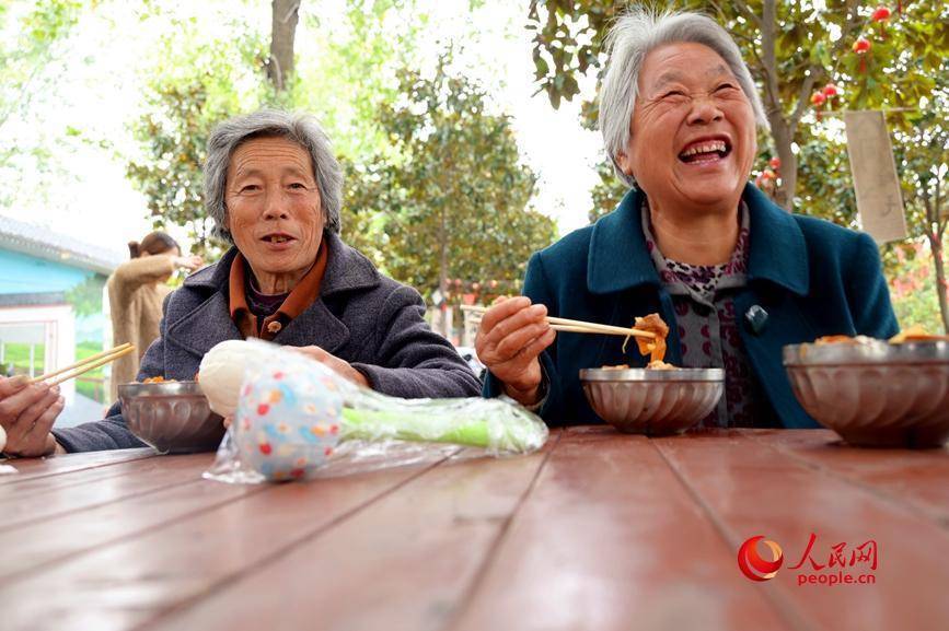 老东谈主们边吃饭边话家常。申鸿皓摄