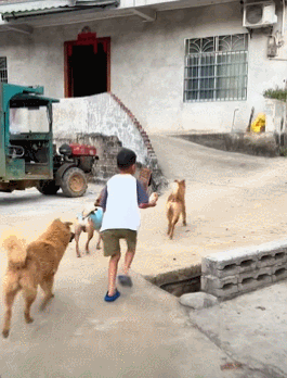 今日最倒霉的小孩哥,先被狗子绊倒。