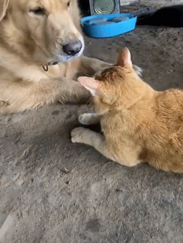 狗子闲着没事,舔了一下身旁的猫咪,恶果就反被猫咪舔了一下昼...
